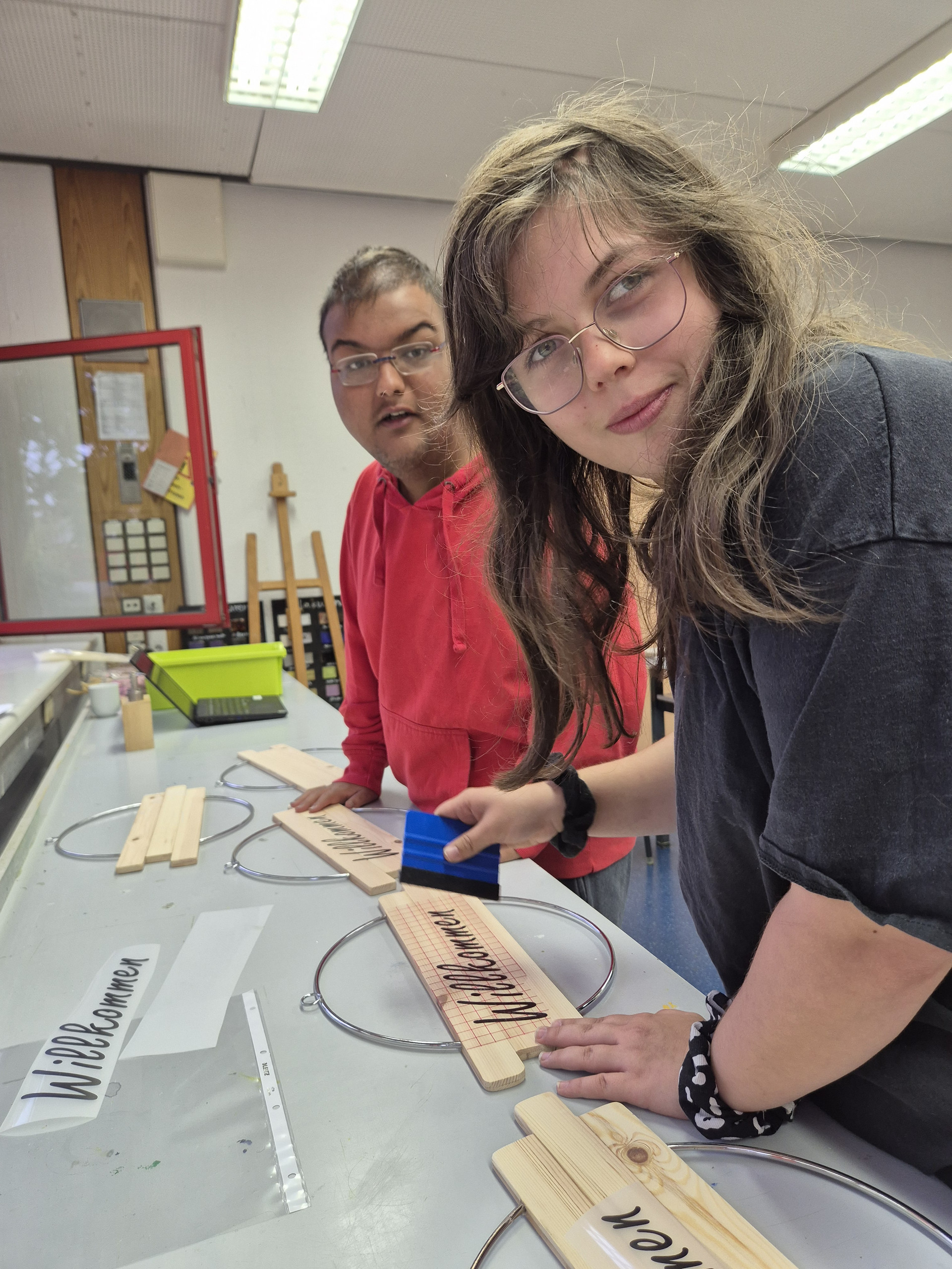 Wir haben Fensterdeko hergestellt. Das hat uns viele Nerven gekostet.