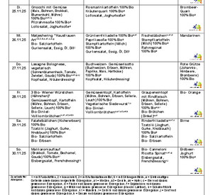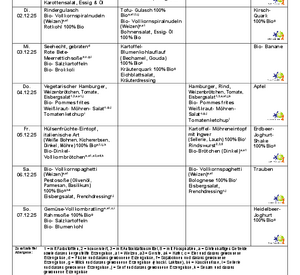 deckt. Menü eins ist nach den Richtlinien der DGE zertifiziert. Ebenso ist unsere Küche Bio-Zertifiziert. In der Cafeteria wird mit einem Tablett-System gearbeitet. Es wird auf ansprechendes und intaktes Geschirr und Besteck geachtet. In Kooperation mit der Hauswirtschaft wird die Cafeteria saisongemäß geschmückt und somit für ein entsprechendes Ambiente gesorgt.