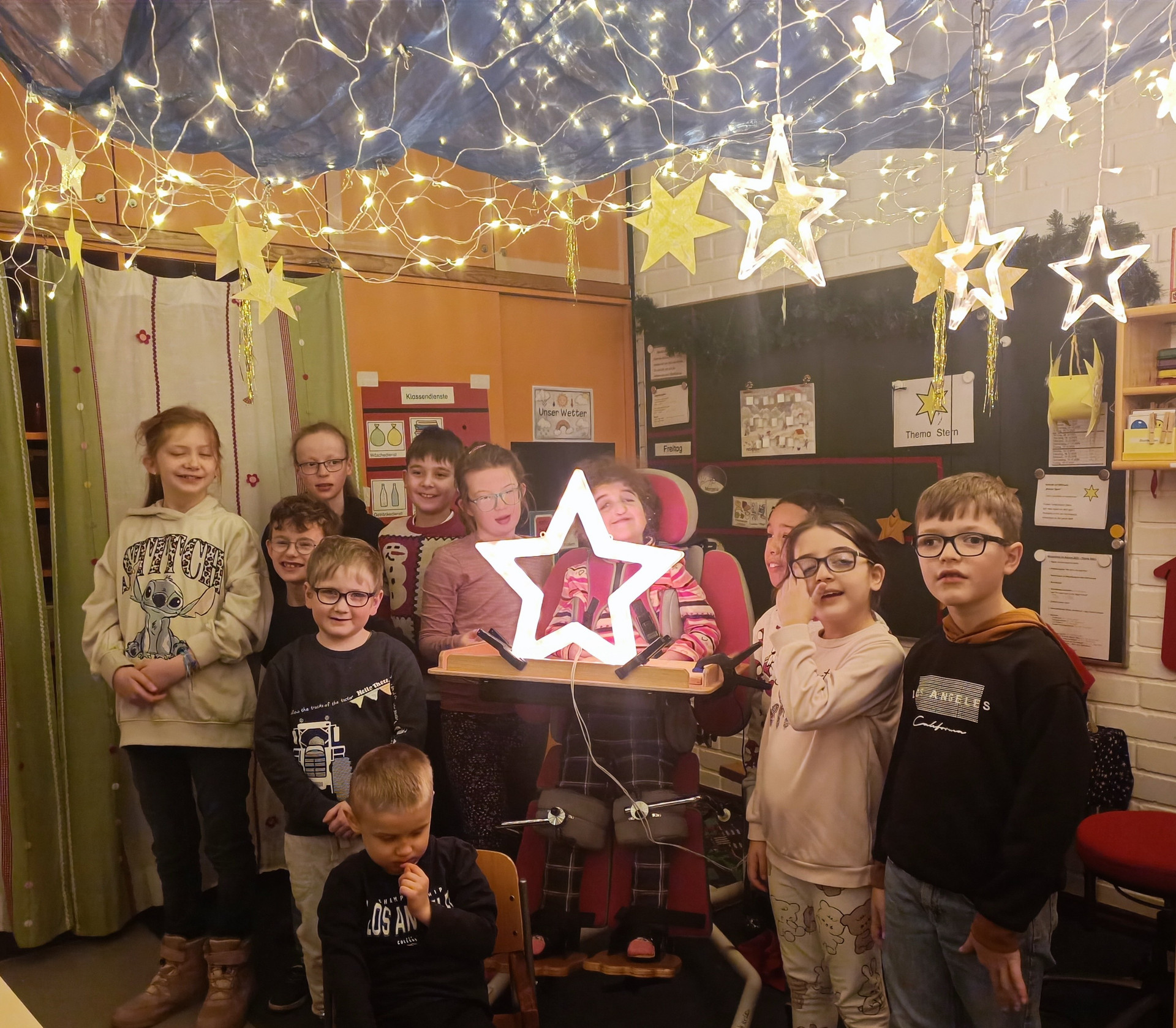 Die Gewinnerklasse erstrahlt in einem weihnachtlichen Lichterglanz.